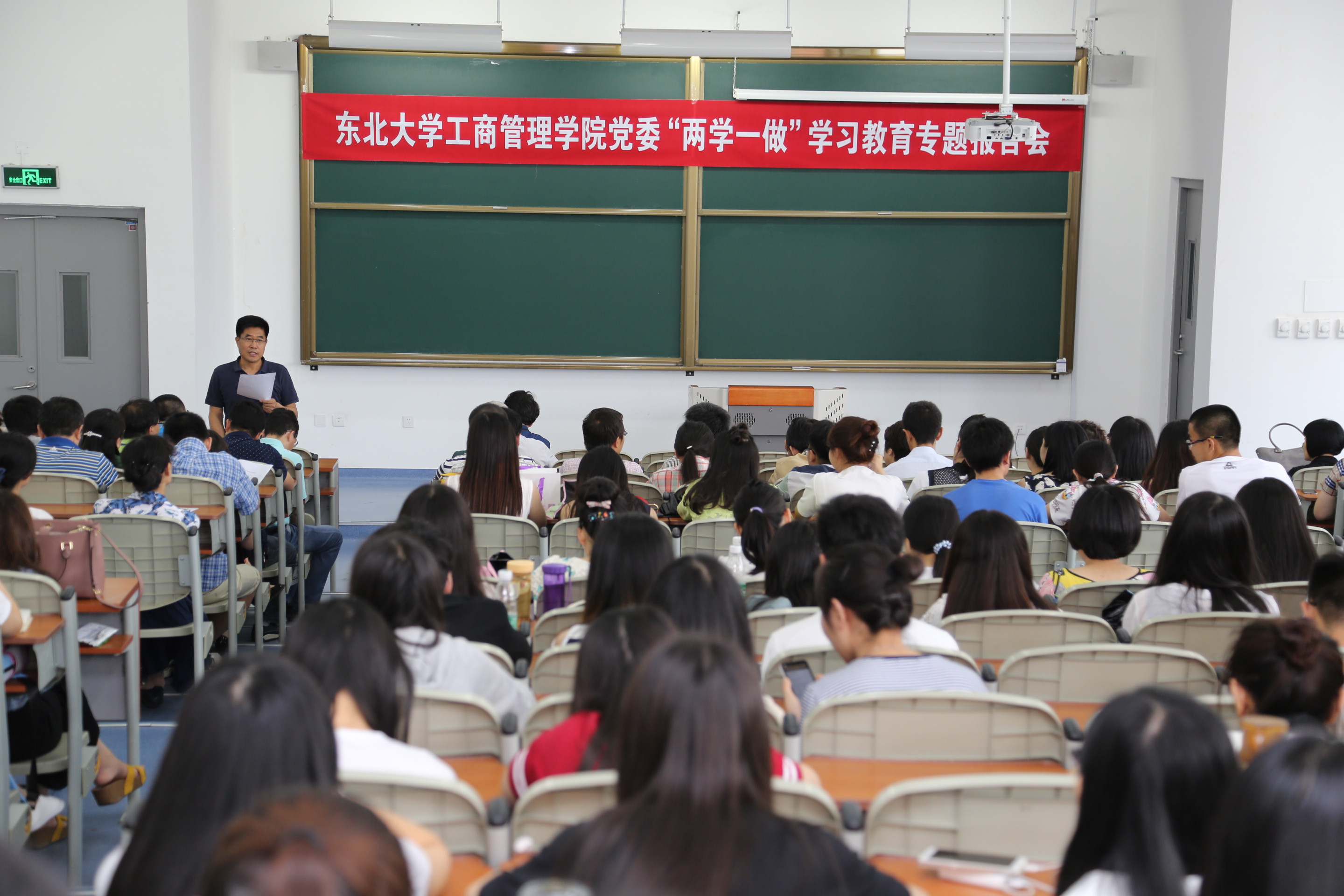按照学校党委有关“两学一做”学习教育的要求和学院党委《实施方案》的安排,6月23日一本道 党委举办了“两学一做”学习教育专题报告会,邀请马克思主义学院院长田鹏颖教授以“五大发展理念”引领新发展为题作报告,全院教职工党员、学生党员代表近200人参加了报告会,报告会由学院党委书记郝树满主持。
